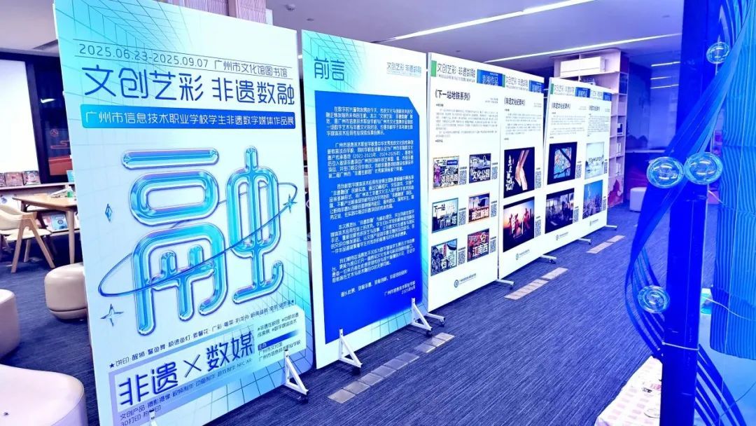 6月24日-9月7日,2025年非遗在校园之广州市信息技术职业学校“文创艺彩 非遗数融”学生非遗数媒作品展在广州文化馆图书馆展出。本次展览由广州市信息技术职业学校与广州市文化馆(广州市非物质文化遗产保护中心)联合主办,是我校与广州市文化馆携手呈现的一场数字艺术与非遗文化的对话,也是我校学子本年度在数字媒体技术应用专业探索成果的展示,更是“非遗在校园”系列活动的中职学校非遗成果盛会。