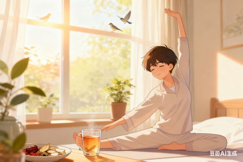 醒来别立刻下床喝,此时阳气刚萌动、脾胃没醒,过早喝易积胃腹胀。正确做法:先躺3-5分钟闭目养神,做几个深呼吸(吸气4秒、呼气6秒),让身体从睡眠中苏醒,阳气慢慢上升;坐起后伸伸懒腰活动手脚,帮气血流通,等脾胃“激活”后再喝,水液能更好被运化,尤其晨起头晕的人这样做,头晕会明显减少。