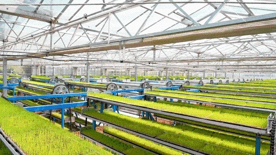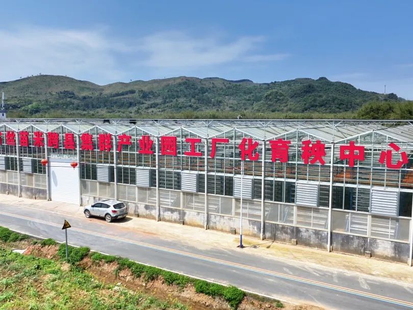 广东省跨县集群丝苗米产业园工厂化育秧中心位于清新石潭,循环运动式的育苗设备不但提高育秧效率,还大大节约了用地空间和人工成本。